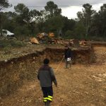 C’est Eric, terrassier à Montfort-sur-Argens, qui ouvre le chantier par 3 journées de bucheronnage. Une fois que le chemin d’accès a été débroussaillé et que la multitude de petits pins qui avaient envahi le terrain ont été débités, le terrassement a pu débuter entre 2 orages !