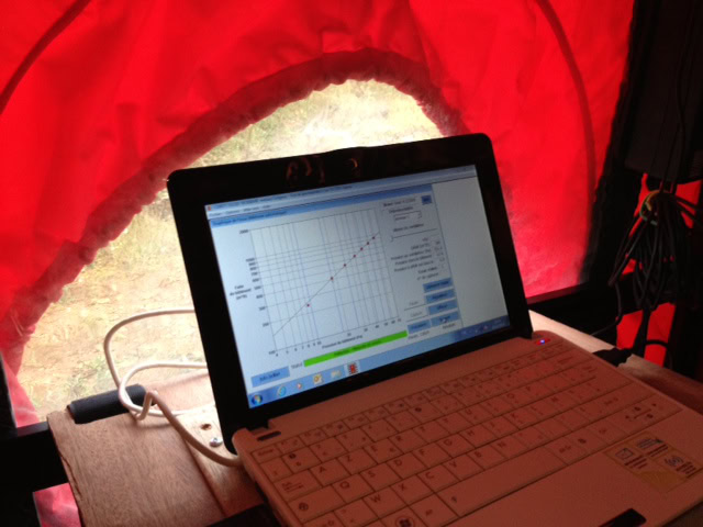 Le test d’infiltrométrie est donc un préalable à la RT 2012 et il permet l’analyse des infiltrations parasites dans le calcul de la performance énergétique de l’enveloppe de la maison. C’est Jean-François Python du bureau d’étude Convergence (La Valette du Var) qui est venu procéder au test final d’une maison que nous avons réalisée à Cotignac. Ce test consiste à mettre la maison en dépression, ou surpression (suivant le type de l’isolation) et à calculer le débit de fuite de l’enveloppe. Il convient donc de fermer les ouvertures contrôlés (VMC) et de remplacer la porte d’entrée par un appareillage de mesure de type « BlowerDoor » (ou porte soufflante).
