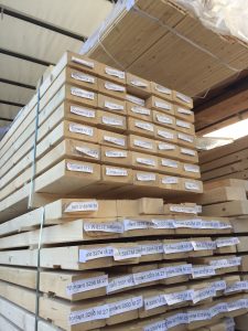 Après avoir réalisé la pose des lisses de sol, nous devons procéder au montage des murs en bois de la maison. Cette opération commence par un repérage des bois préparés par l’usine. Chacun des bois est repéré par une étiquette. Sur cette étiquette est mentionné