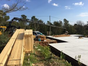 Chez Maison bois coté sud nous travaillons avec les 2 techniques intermédiaires qui nous apportent suffisamment de précision dans l’exécution et le montage tout en nous préservant des grosses problématiques de transport. En effet, nos maisons sont toujours uniques et une pré-coupe nous permet d’être rapides dur le chantier, mais en Provence les terrains sont de plus en plus rares et difficiles d’accès .. Il est parfois difficile d’arriver au pied de la futur maison avec un petit camion, ce qui rend la construction 3 D impensable et bien souvent même la 2 D difficile.