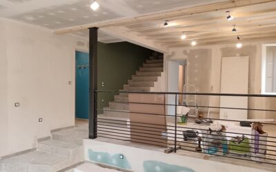 Nous voici donc pratiquement étanche (une partie de la terrasse doit être terminée après le passage de Georges Meneses -l’artisan électricien de la maison- et de son réseau de câbles).
